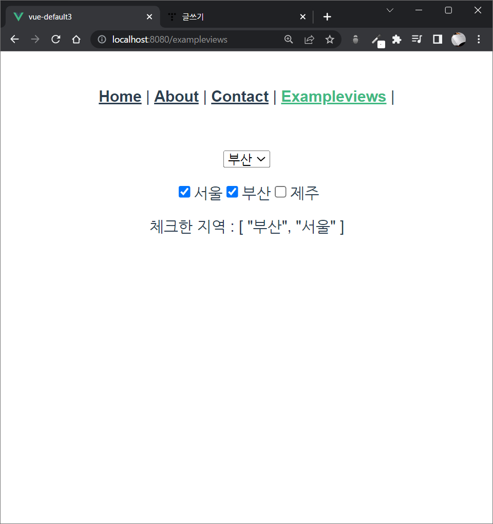 <label for=""><input type="checkbox" value="부산" v-model="checked" />부산</label>